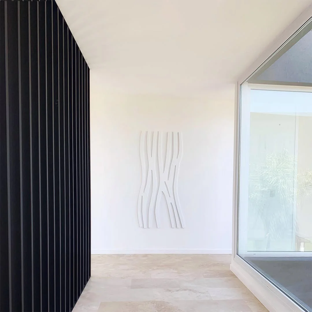 La obra de Ana Dardik se sitúa en el umbral entre la materia y el vacío. A través de relieve en madera o metal crea espacios donde la forma y la ausencia se encuentran, se tensan y se equilibran. Su trabajo explora ese punto de fricción en el que lo visible y lo invisible conviven.